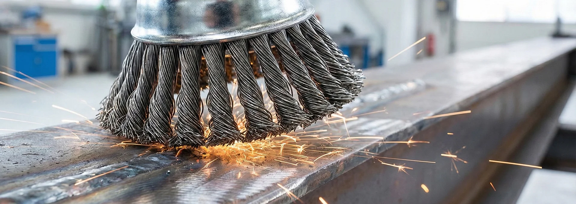 Najczęściej stosowany do agresywnego czyszczenia, usuwania rdzy i zgorzeliny. Dostępny w różnych twardościach i średnicach drutu.